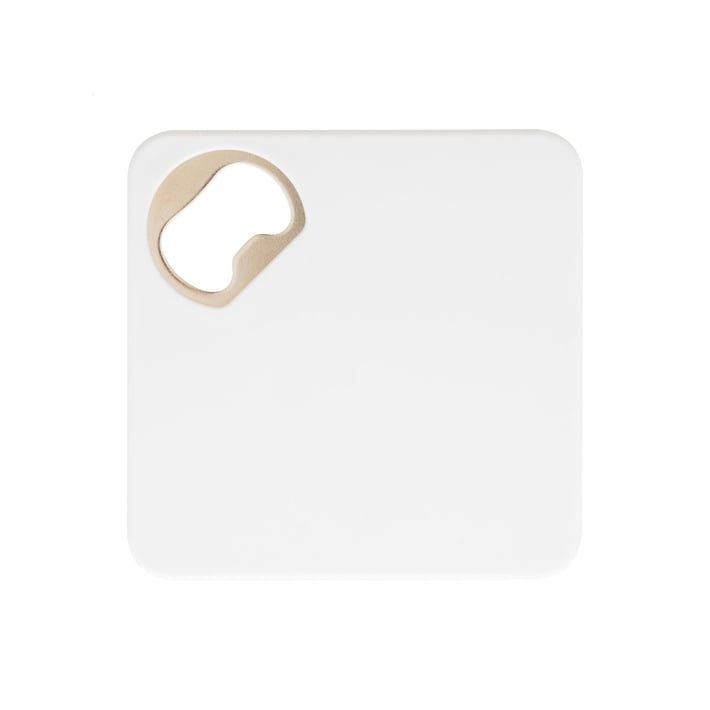 Тази стилна подложка комбинира две функции: пластмасова основа с вградена метална отварачка за бутилки и антиплъзгащо дъно, което гарантира стабилно поставяне и защита на масата при сервиране на напитки.