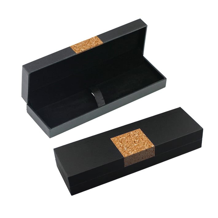 • Елегантна кутия за съхранение на едно пишещо средство с коркови елементи.