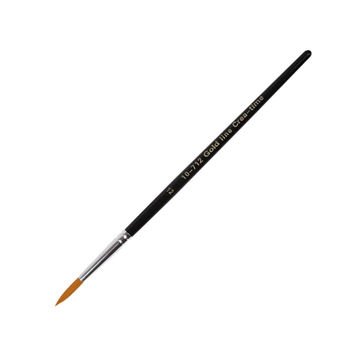 Качествена обла четка с найлонов синтетичен косъм и къса дървена дръжка. Идеална както за тънки, така и за дебели линии.