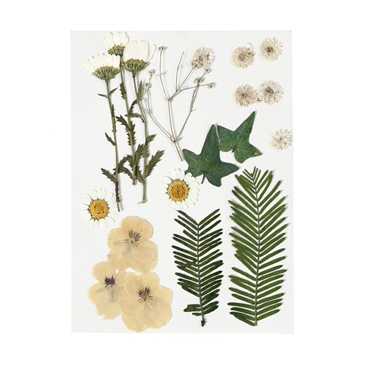 • Истински пресовани и изсушени цветя и листа за декорация на картички, кутии и други подобни.