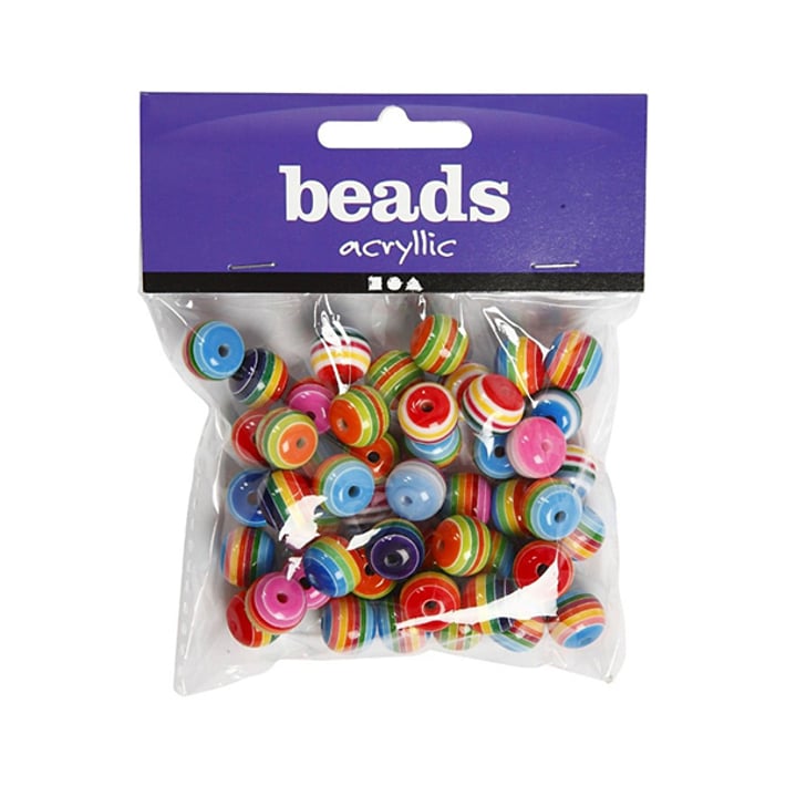 • Микс от 50 броя пластмасови кръгли мъниста на райета.