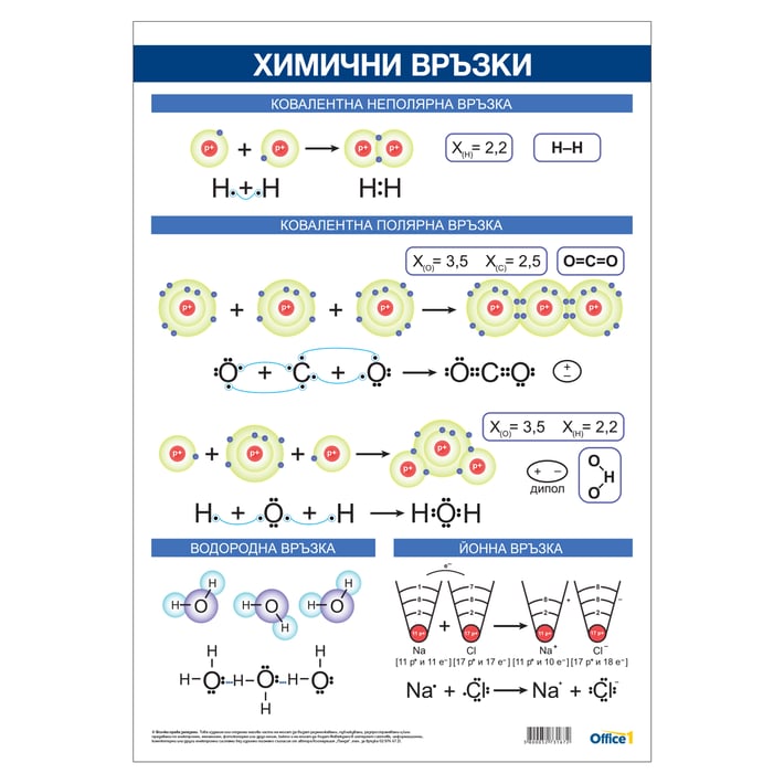 Office 1 Ученическо табло ''Химични връзки'', 70 x 100 cm