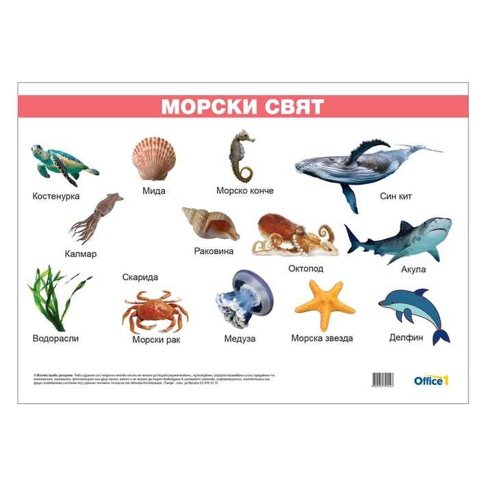 • Ламинирано ученическо табло ''Морски свят''.