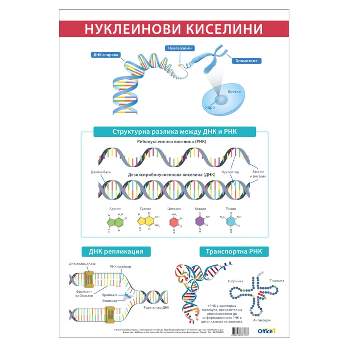 Office 1 Ученическо табло ''Нуклеинови киселини'', 70 x 100 cm