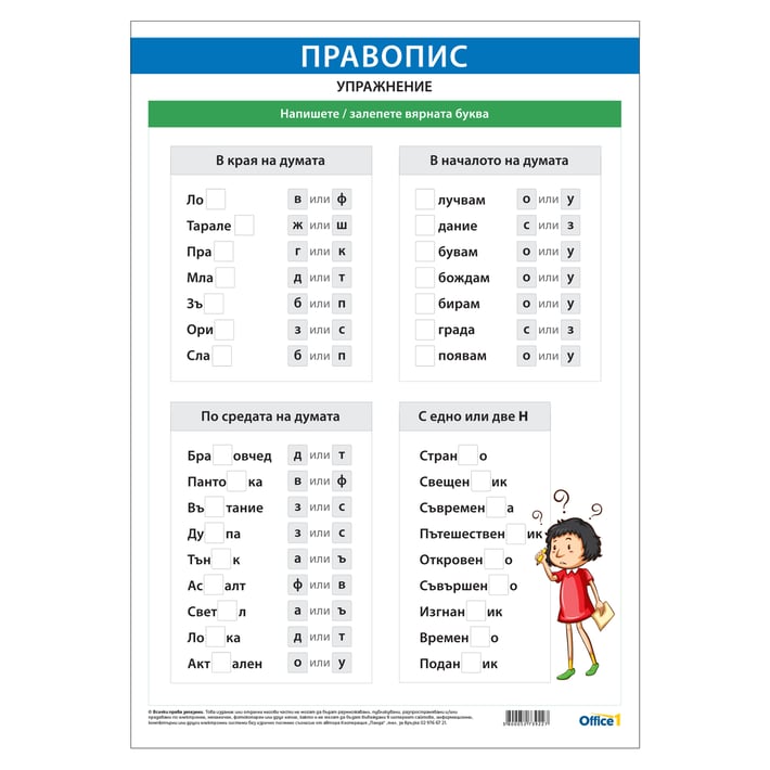 Office 1 Ученическо табло ''Правопис'', упражнение 1, 50 x 70 cm