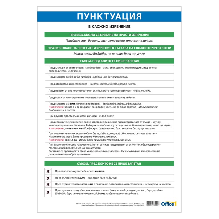 Office 1 Ученическо табло ''Пунктуация в сложно изречение'', 70 x 100 cm