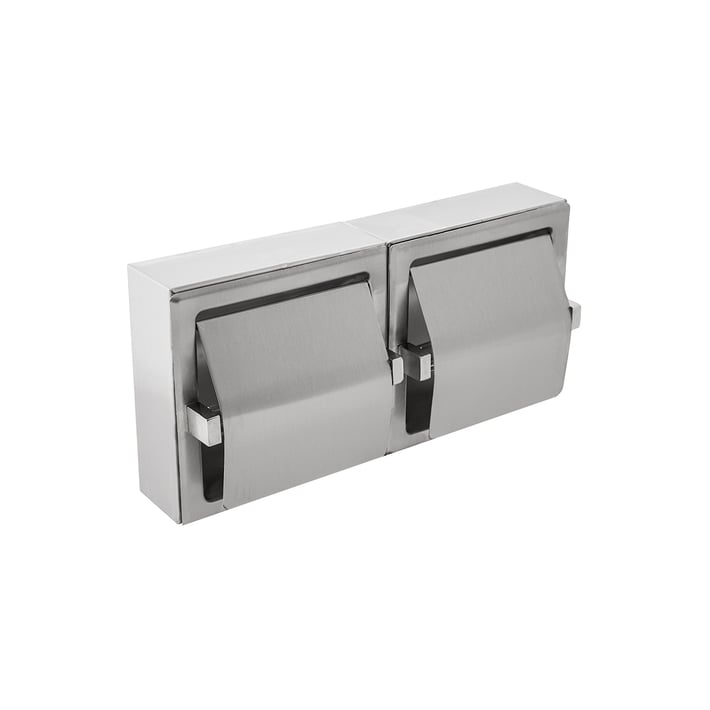 • Двоен диспенсър за тоалетна хартия, подходящ за офиса, санитарни помещения и търговски обекти.
