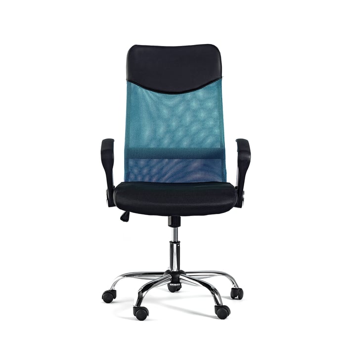 Директорски стол Monti HB, текстил, екокожа и меш, Tilt механизъм, до 120 kg, черна седалка, тюркоазена облегалка