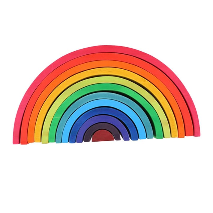 Дъгата се състои от 12 разноцветни елемента с еднаква форма и различна големина. С цветната дъга има множество занимания, като редене на пъзел, кула, спирала, тунел или балансираща фигура.