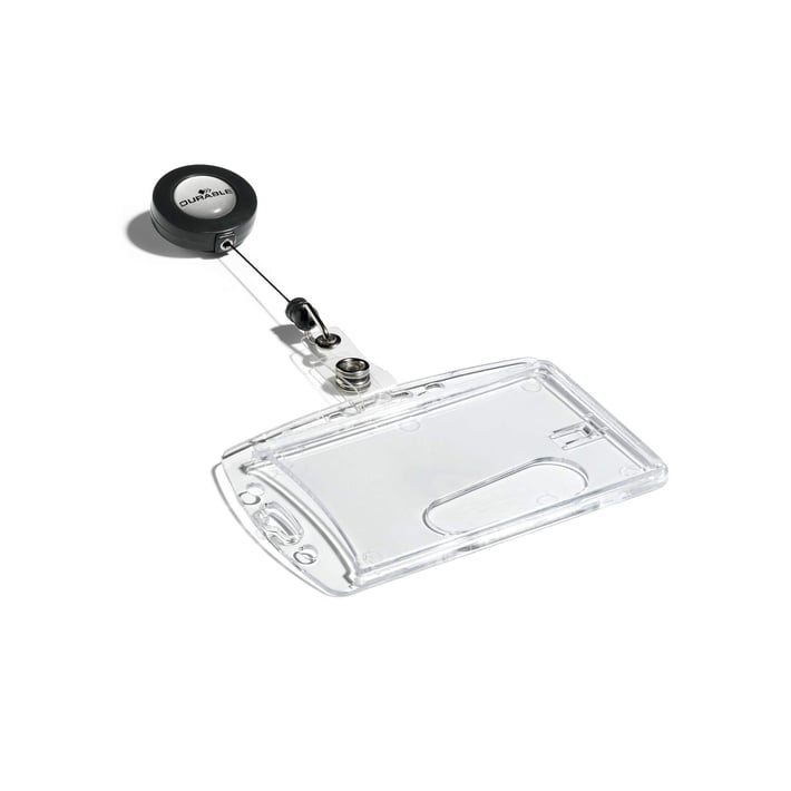 Бадж за идентификационна карта със затворен дизайн и ролетен ретрактор. Подходящ за 1 карта или пропуск.