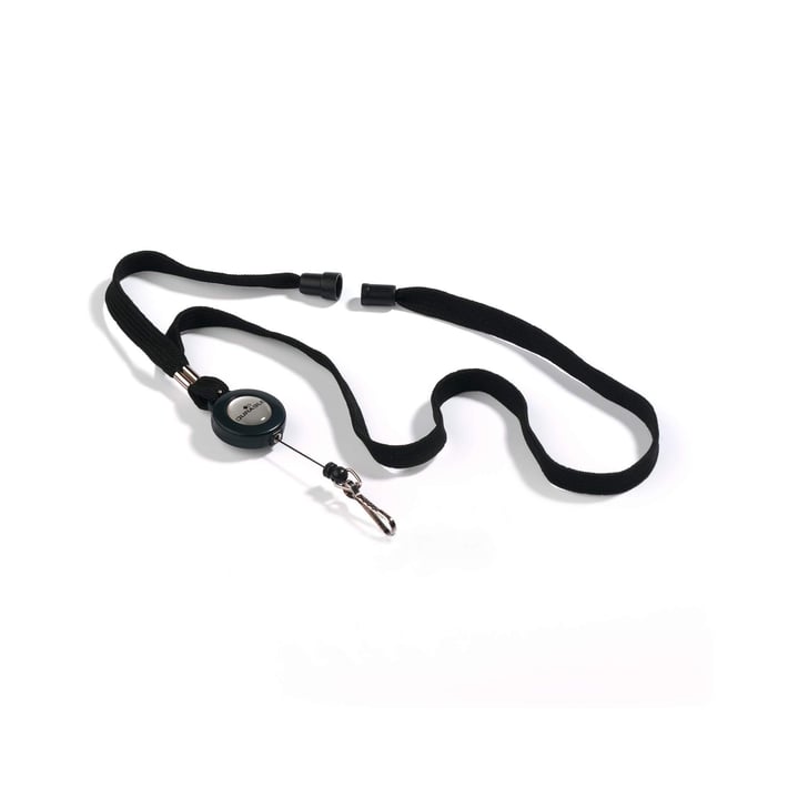 Durable Лента за бадж, текстилна, с ретрактор, черна, 10 броя