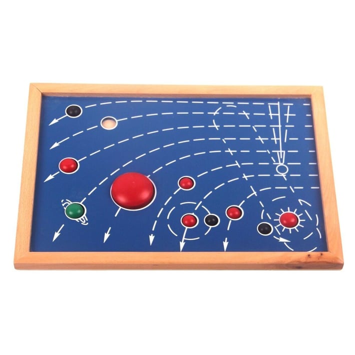 Играта представлява дървена дъска с размери: 41,5х30х1,5 см. В нея са изрязани 11 дупки, които съответстват на Слънцето, деветте планети, които се движат около него, и Луната. Във всяка дупка се поставя дървен елемент, който да съответства на някое от 11-те небесни тела. На дъската са нарисувани и орбитите на планетите около Слънцето, както и тази на Луната около Земята.