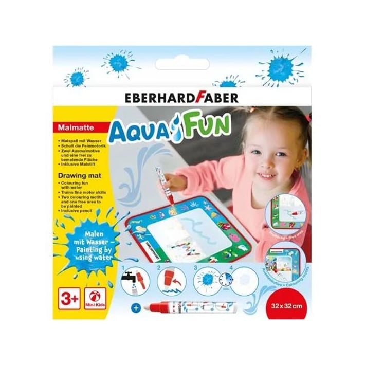 Подложка, която гарантира часове забавление, а в същото време тренира фината моторика при децата.Съдържа два мотива за оцветяване с вода, както и свободна зона за рисуване.След изсъхване картината изчезва и забавлението с рисуването може да започне отново.За да почистите подложката, само я избършете с влажна кърпа. Не я перете и не използвайте почистващи препарати. Оставете я да изсъхне напълно след употреба.