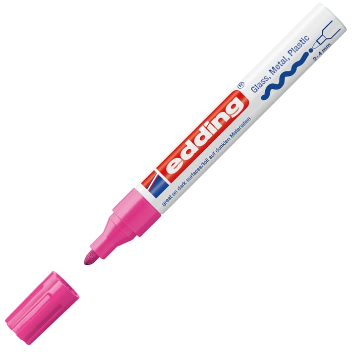 Перманентен Paint маркер с лаков завършек, лакиращ ефект. Подходящ за маркиране, рисуване и декорация върху гладки, порести, светли и тъмни прозрачни повърхности (стъкло, пластмаса, дърво, метал и други).Пигментно водоустойчиво мастило с висока издръжливост на атмосферни влияния и вода.Видимост на цвета на мастилото при топлина от 400 до 1000°С в зависимост от цвета.Перманентно мастило без добавени толуен и ксилен.Широчина на линията: 2 – 4 mm.Разклатете добре преди употреба и натиснете писеца върху равна повърхност.