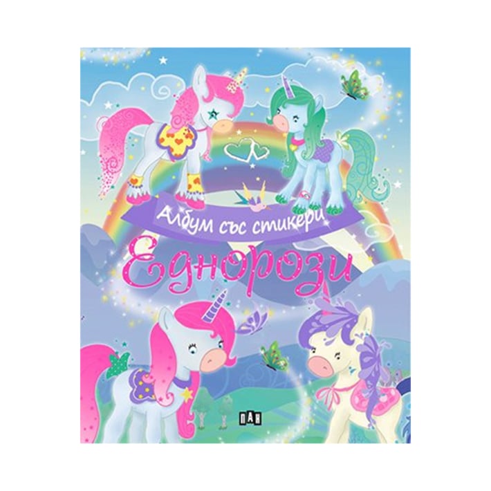 Забавна книжка с красиви илюстрации на еднорози и много стикери.