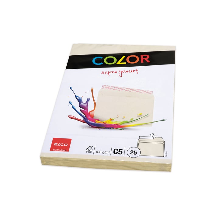 Elco Пощенски плик, C5, 162 x 229 mm, 100 g, прав капак със самозалепваща лента, кремав, 25 броя