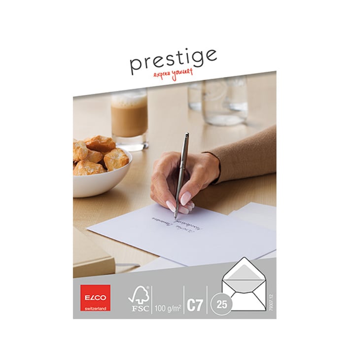 Elco Пощенски плик, C7, 114 х 81 mm, 100 g, триъгълен капак самозалепващ, бял, 25 броя