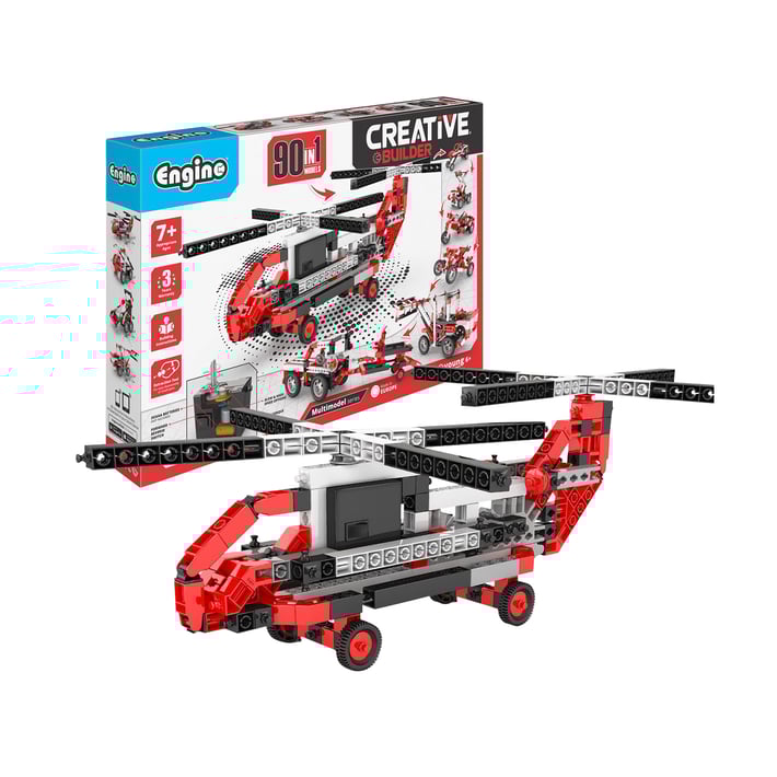 Подарете на вашият малчуган вълнуващо приключение с комплекта „Машини с електромотор - 90 в 1“ на "Engino". Той е част от серията "Inventor" и се състои от 217 пластмасови елемента, с които детето да сглоби над 90 уникални модела на различни тематики.