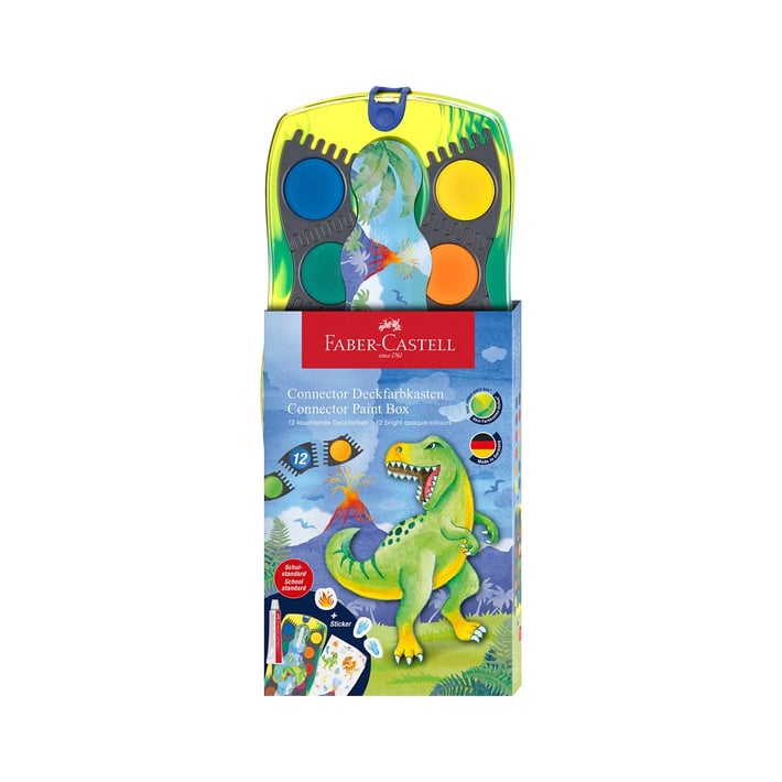 Faber-Castell Акварелни бои Connector – Динозавър са специално създадени за малките художници, които искат да комбинират забавление с творчество. Със своите 12 ярки цвята и уникален дизайн, този комплект е идеален за стимулиране на въображението и развитието на художествените умения.