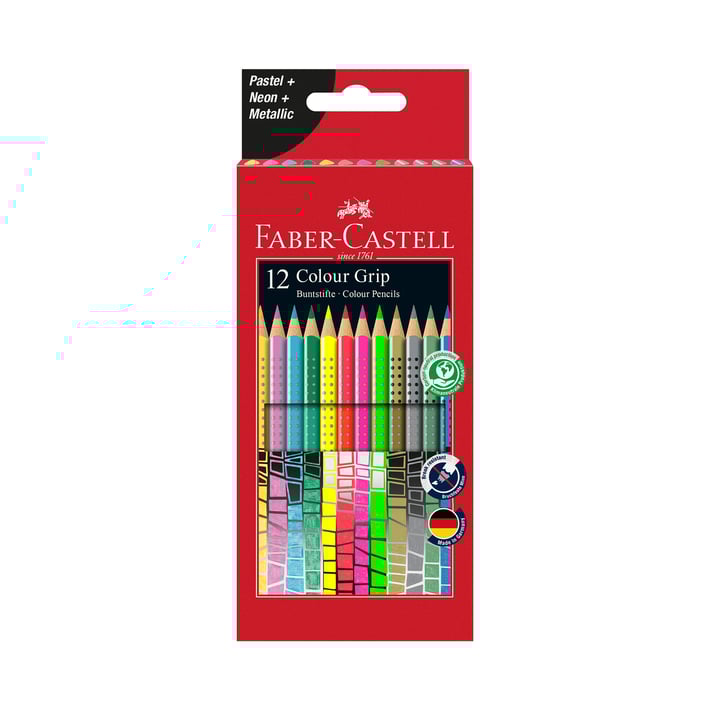 Идеални за по-големи деца, цветните моливи Color Grip имат ергономичен триъгълен дизайн и патентована зона за захващане Soft-Grip. Това гарантира удобство при употреба и лесно рисуване. Високата наситеност на графита прави цветовете много ярки. Водоразтворимите пигменти дават фантастични резултати: просто нарисувайте картината си, след това намокрете четката, за да създадете красиви акварелни изображения.