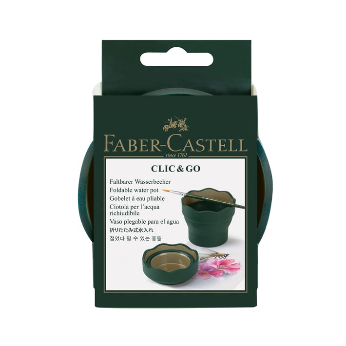Clic&Go е една от многото интересни и практични идеи на Faber-Castell. Чашите за рисуване и четките Clic&Go имат възможност да се сгъват и така да предпазват съдържанието на чантата и несесера от измърсяване.
