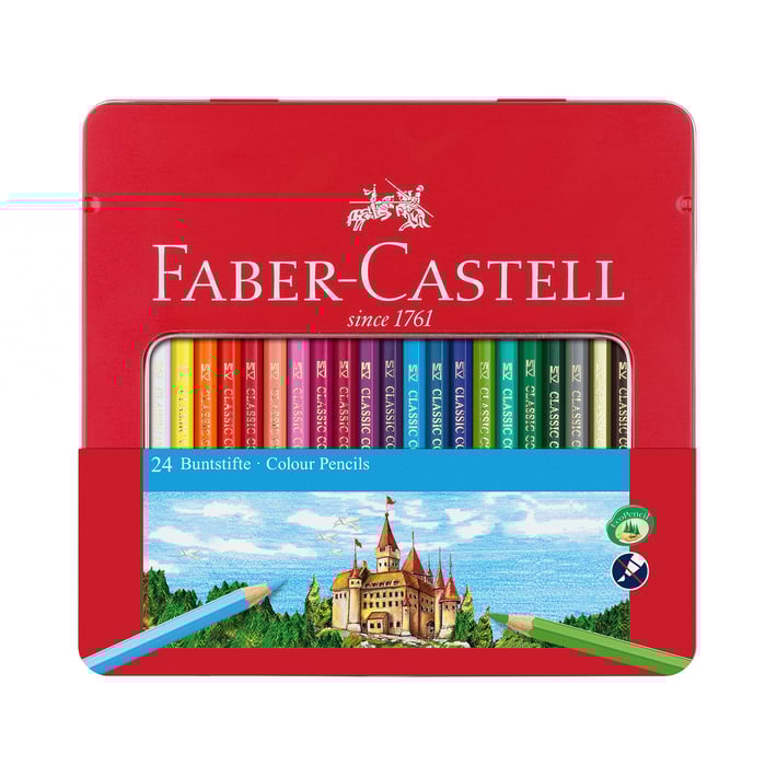 Класическите цветни дървени моливи Faber-Castell се отличават със стандартен размер и шестоъгълна форма.