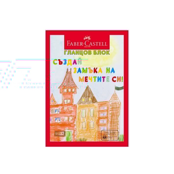 • Faber-Castell гланцово блокче e с корица – 130 g/m2, гланцова хартия – 60 g/m2.