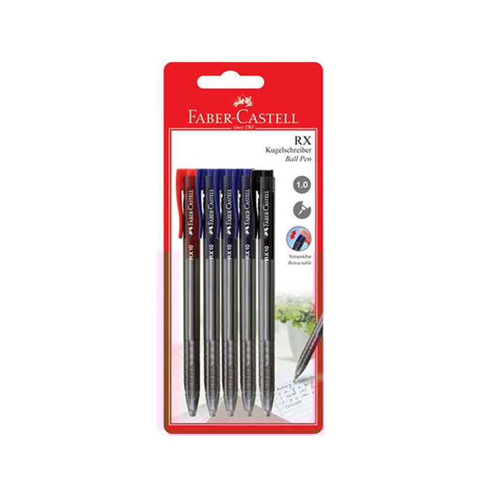Faber-Castell Химикалка RX10, автоматична, 1.0 mm, 5 броя, асорти
