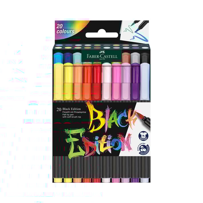 Висококачествените цветни маркер-четки Faber-Castell Black Edition притежават нюанси, специално подбрани от учители по изобразително изкуство в Германия.