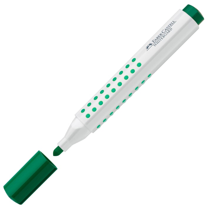 Grip маркерите за бяла дъска са с изключително здрав връх, ергономична триъгълна форма и Grip зона на захващане, което позволява лесно и перфектно нанасяне върху бялата дъска. Мастилото е с лек мирис и е в зелен цвят. Пълнителят е проектиран така, че се презарежда изключително лесно – върхът се поставя в специалния отвор на мастилницата и се оставя да престои до едно денонощие.