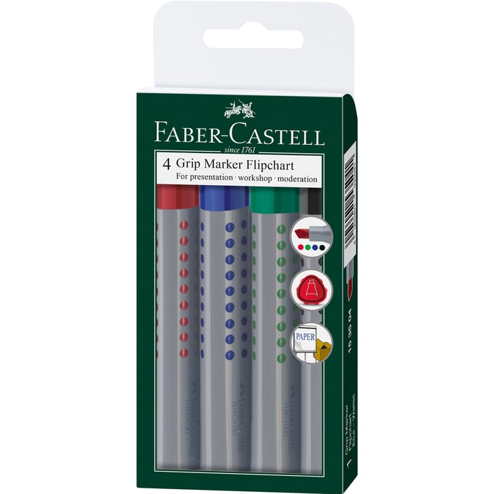 Faber-Castell Маркер за флипчарт Grip, скосен, 4 цвята