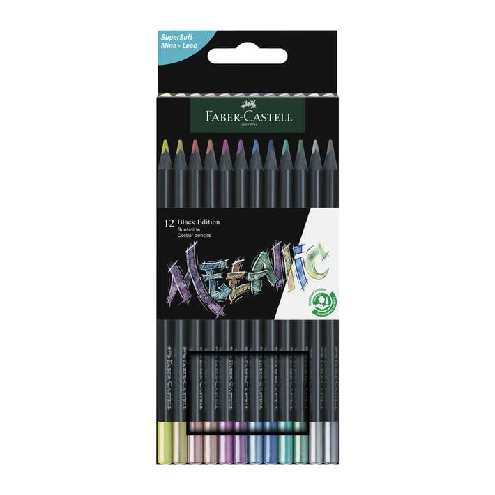 Висококачествените цветни моливи Faber-Castell Black Edition притежават нюанси, специално подбрани от учители по изобразително изкуство в Германия. Триъгълната форма гарантира по-добър контрол и по-голям комфорт по време на употреба.
