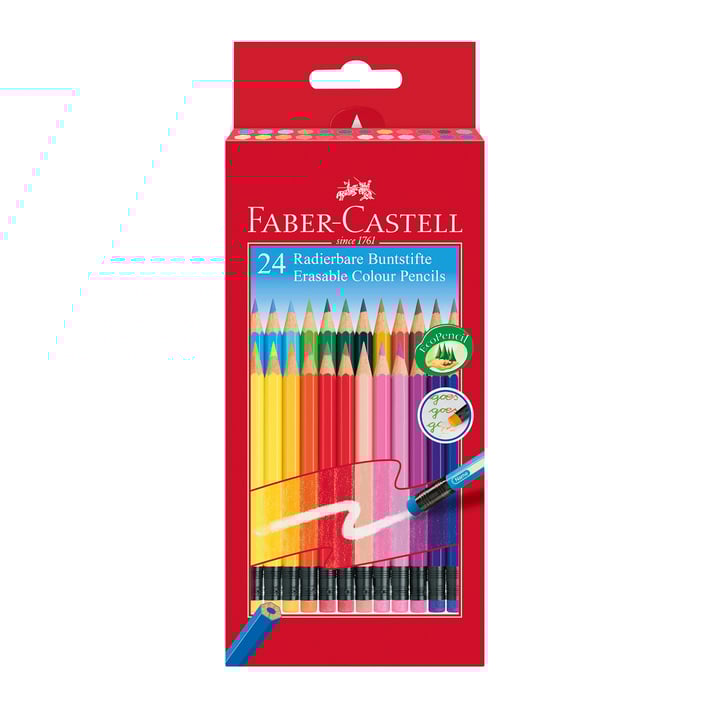 Цветните изтриваеми моливи са с интегрирана гума в края на всеки молив. Те се нанасят меко и могат лесно да бъдат изтрити, което е важно за рисуването в училище.