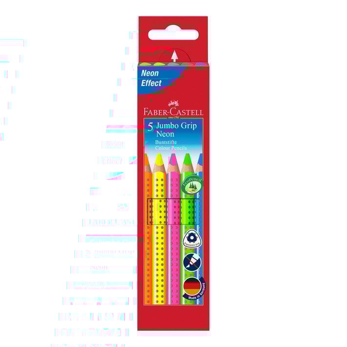 Jumbo Grip неонови цветни моливи с патентована зона за захващане.