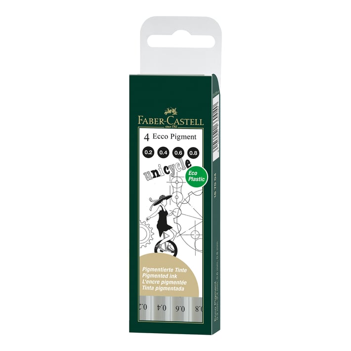 Тънкописците Ecco Pigment са добре познати и са подходящи за писане, скициране и рисуване. Благодарение на специалното си мастило са идеални за използване върху чертожна и тънка хартия, както и върху паус