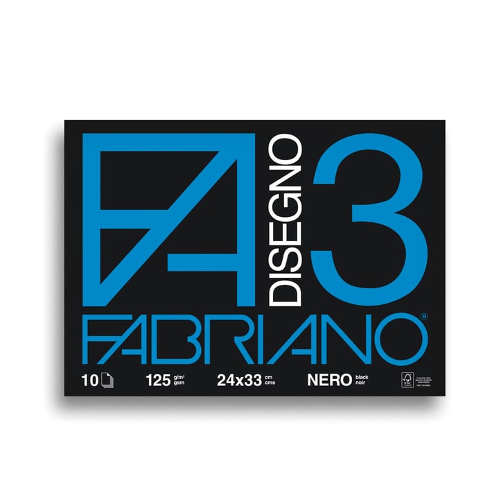 Fabriano Блок за рисуване Disegno 3, 24 x 33 cm, 125 g/m2, черна хартия, грапав, шит с телчета, 10 листа