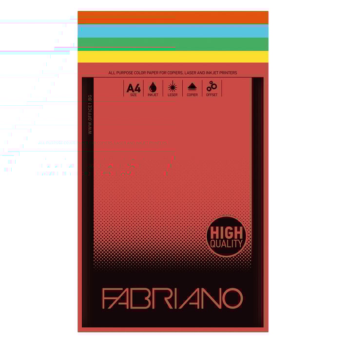 Fabriano Копирен картон, A4, 160 g/m2, наситени цветове, 4 цвята, 100 листа