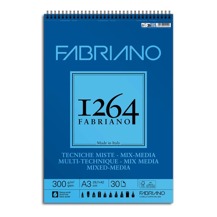 Fabriano Скицник, за смесени техники, А3, 300 g/m2, вълниста текстура, 30 листа