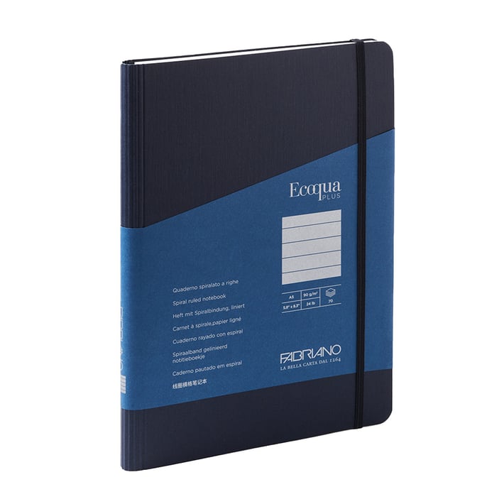 EcoquaPLUS е висококачествена колекция от тетрадки със скрита спирала, подходящи за ежедневна употреба. Произведени са в Италия от FSC сертифицирани материали.
