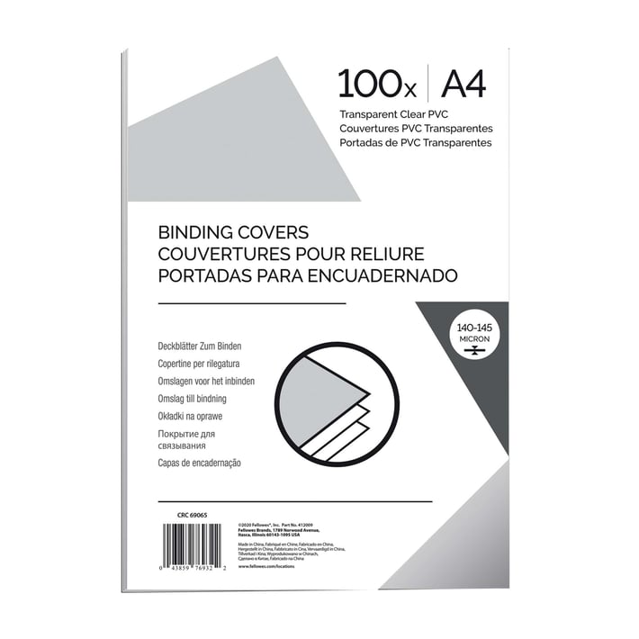 Fellowes Корици за подвързване, PVC, А4, 150 микрона, прозрачни, 100 броя