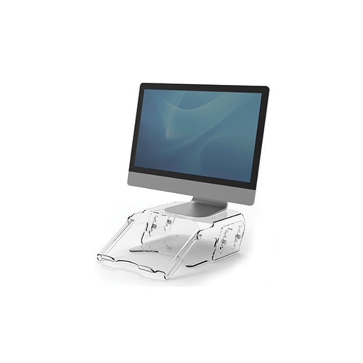Увеличете максимално пространството на бюрото и повдигнете монитора си на удобна височина, за да намалите напрежението в очите, врата и раменете.
