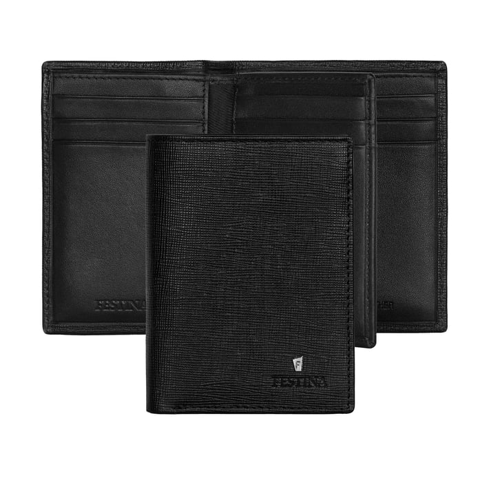 Серията "Chronobike" от дребни кожени изделия е изработена от внимателно подбрана естествена кожа с текстура на сафани. Тази черна версия е украсена с емблематичния буква F от логото на бранда във формата на трапец. Този портфейл за карти е изключително практичен, с 12 отделения за карти и две отделения в горната част.
