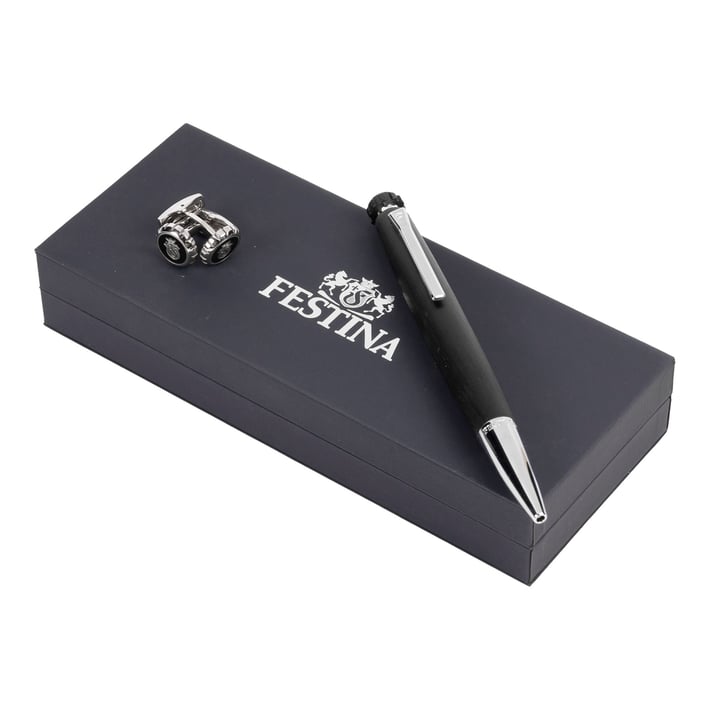 Химикалката е украсена с гравиран модел, вдъхновен от луксозните метални каишки на часовниците Festina.