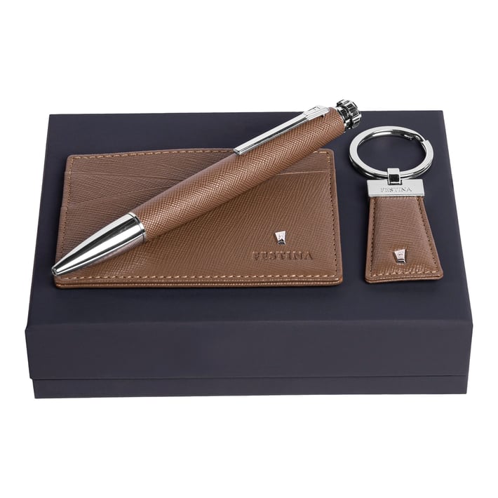 Festina Комплект химикалка, ключодържател и калъф за карти Chronobike, карамел
