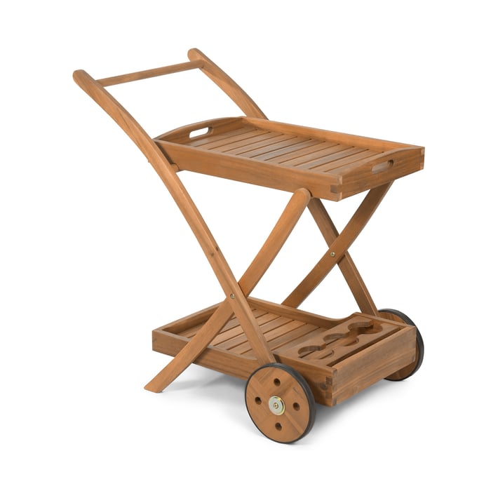 • Дървена градинска количка за чай с две нива.