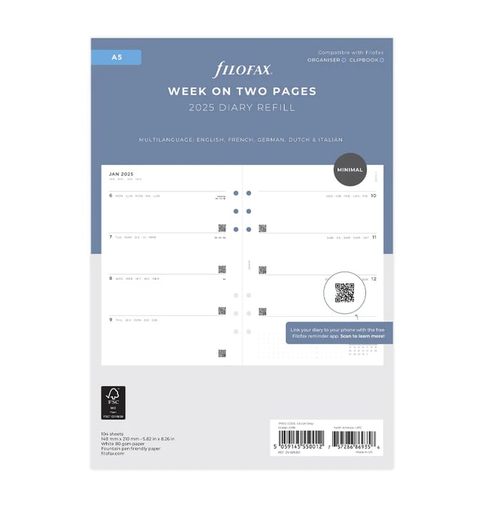 Планирайте седмичните си задачи и срещи с помощта на седмичния планер от Filofax, съвместим с всички A5 органайзери и тефтери на марката.