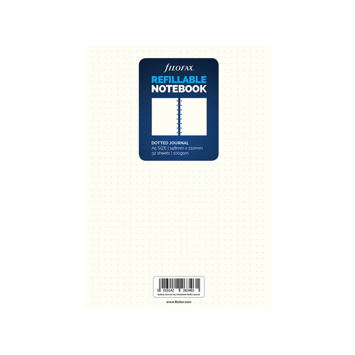 • Пълнител за тефтер Filofax, в размер A5, с 32 кремави листа на точки, разположени в квадратна мрежа.