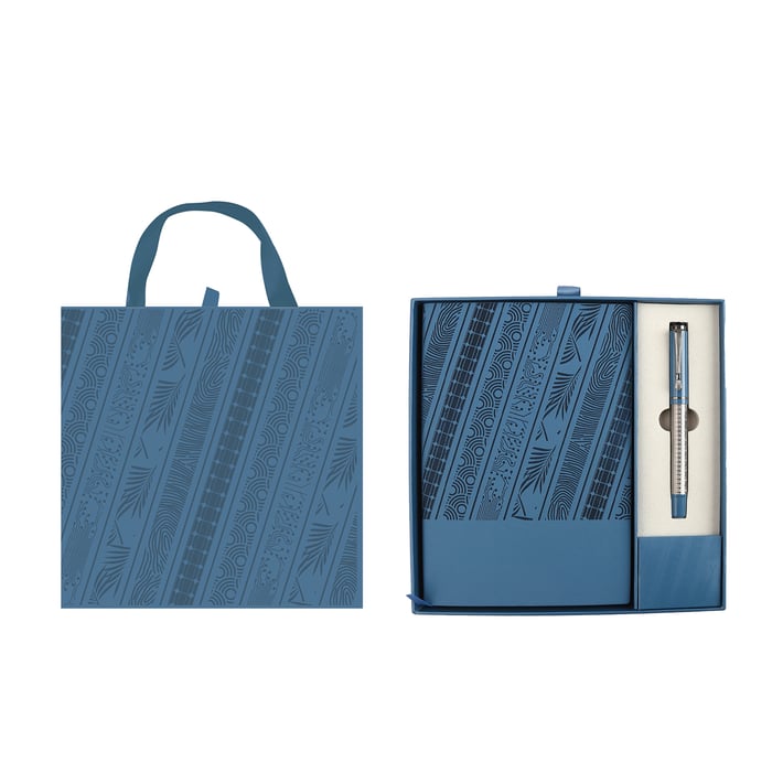 • Подаръчен комплект, включващ тефтер и химикалка в елегантна кутия.