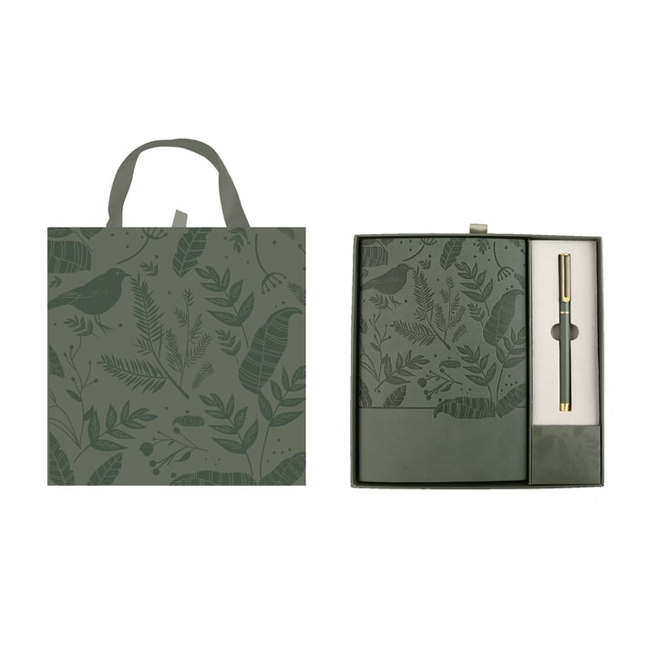 Office 1 Комплект тефтер и химикалка Floral Olive Green, в кутия, зелени