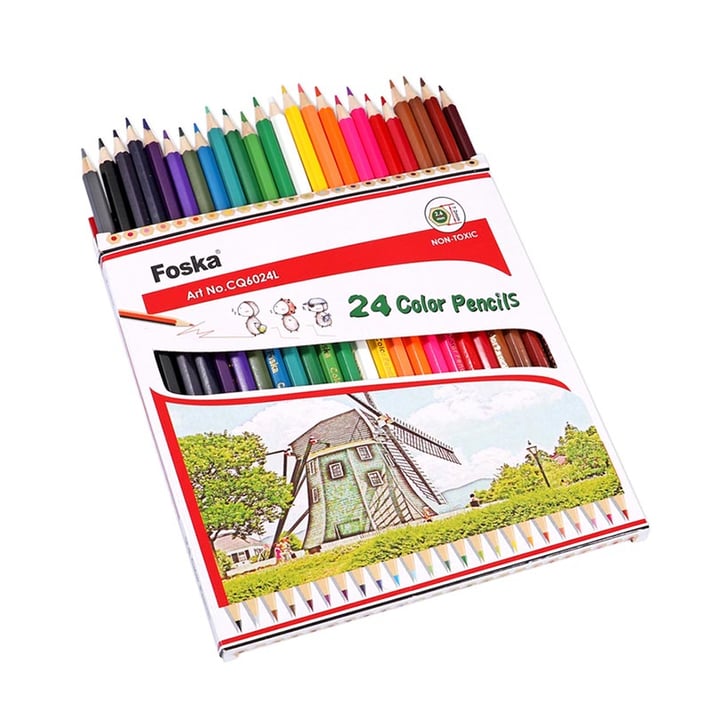 Комплектът съдържа 24 висококачествени цветни молива с удобна шестоъгълна форма за стабилен и комфортен захват. Ярките и наситени цветове позволяват лесно смесване и създаване на красиви рисунки както за училище, така и за хоби и арт проекти.